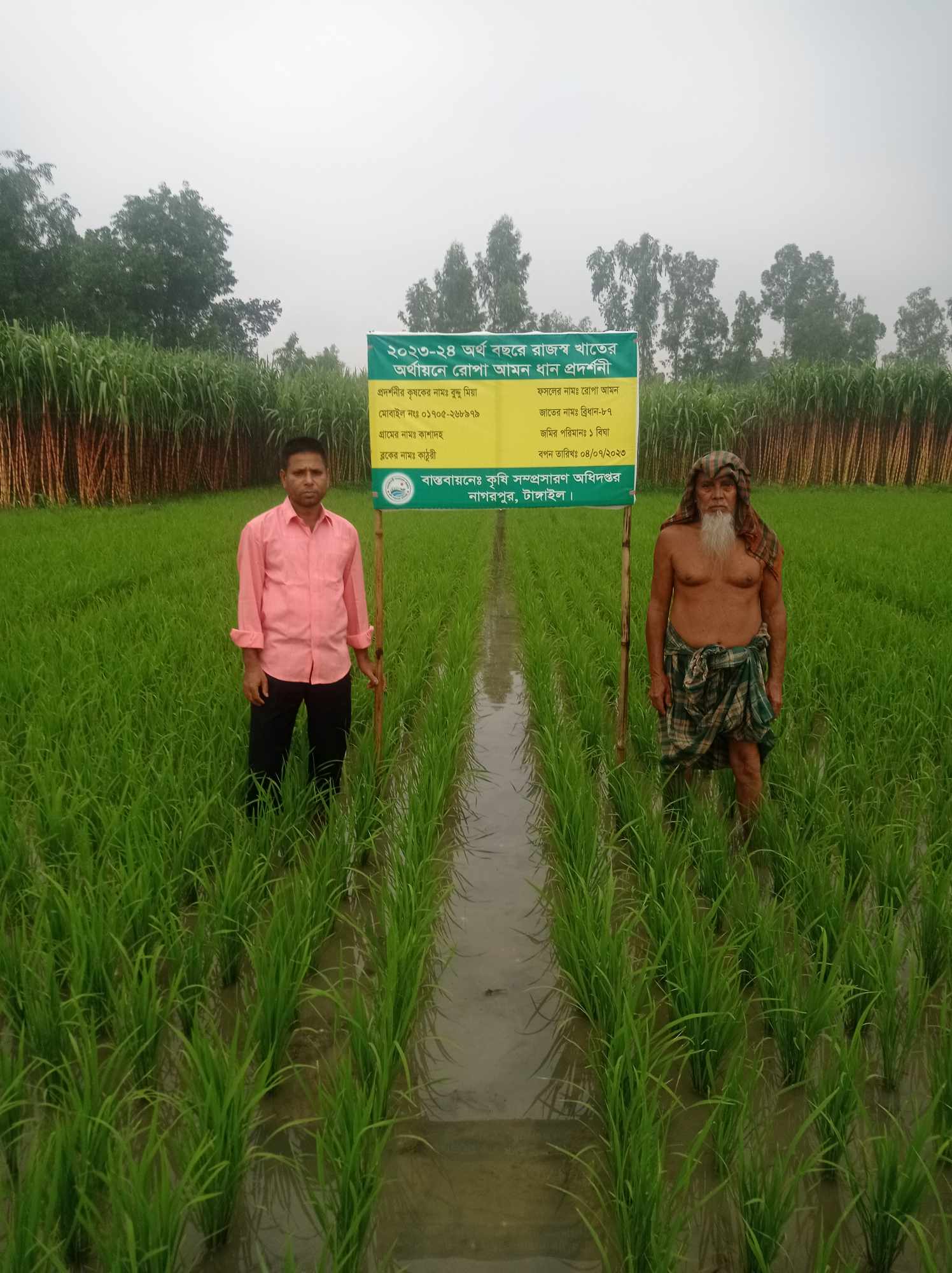 রাজস্ব প্রকল্পের রোপা আমনের প্রদর্শনীসহ রোপা আমনে মাঠ ও আখের মাঠ পরিদর্শন